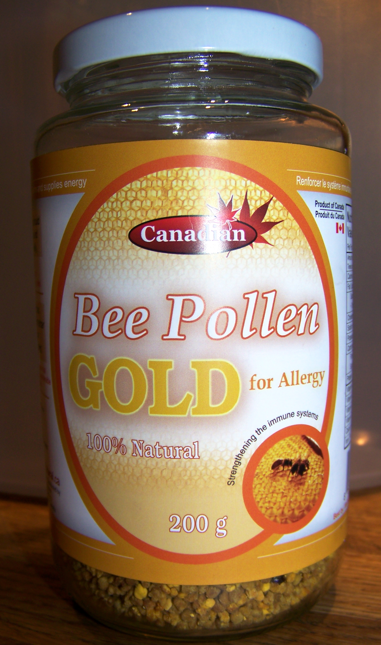 Canadian Bee Pollen Gold for Allergy. If you’re looking for guidelines be warned! The only instructions read, “start with a small dose and increase gradually…” Luckily the article suggested starting with about half a teaspoon and work up to a full one. Apparently bee pollen is best consumed with fruit, so I’ve been sprinkling it on my morning cereal, which I top with fresh or dried fruit. PRODUCT NOTES The pollen looks like tiny yellow stones. They’re somewhat granular to chewy in texture and not really tasty eaten on their own. If you didn’t know it came from bees you’d be hard-pressed to make the connection, as it doesn’t taste like honey at all. BOTTOM LINE While I haven’t noticed any dramatic change, the height of allergy season has yet to arrive so I’ll continue my research into spring and see how I feel when the garden explodes to life. A word of warning though, some people could have severe reactions to bee pollen.
